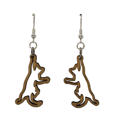 Wooden Cat Earrings: Charming wooden earrings, featuring playful cat silhouettes in a stretching pose. Perfect for animal lovers and those who appreciate unique, handmade accessories. Ideal for casual wear or as a thoughtful gift!