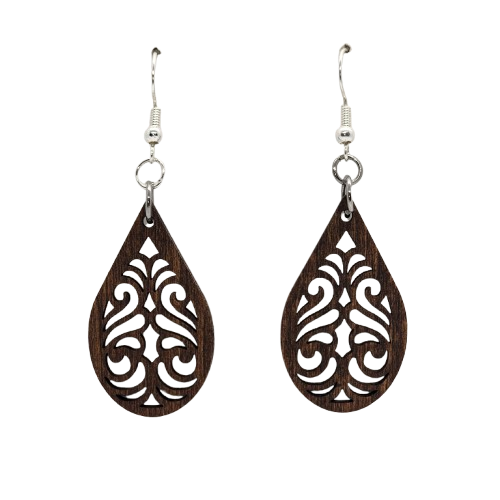 Exotic nature-inspired: These elegant teardrop-shaped wooden earrings are a true testament to artisan craftsmanship. Each earring features a delicate cut-out pattern, reminiscent of the beautiful intricacies found in natural foliage.