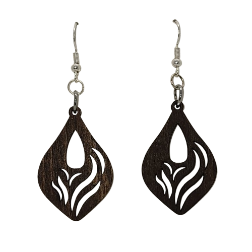 Flamed Leaf: These exquisite wooden earrings! Crafted with precision, each earring features a unique teardrop shape with an elegant cut-out pattern that evokes the essence of nature’s flames or leaves.