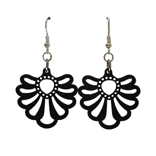 Floral: Step into sophistication with these stunning black floral-inspired dangle earrings. Featuring an intricate lace-like cut-out design, these earrings are the perfect blend of modern elegance and timeless beauty.