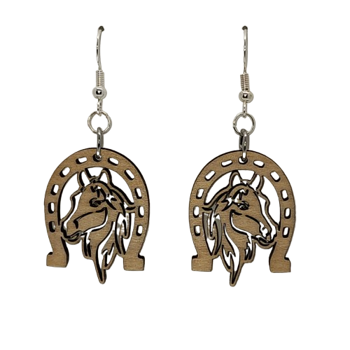 Horse in Horseshoe: Equestrian Elegance - These earrings feature a beautifully detailed cut-out of a horse within a horseshoe, perfect for horse lovers and equestrian enthusiasts. They add a touch of rustic charm to any outfit.