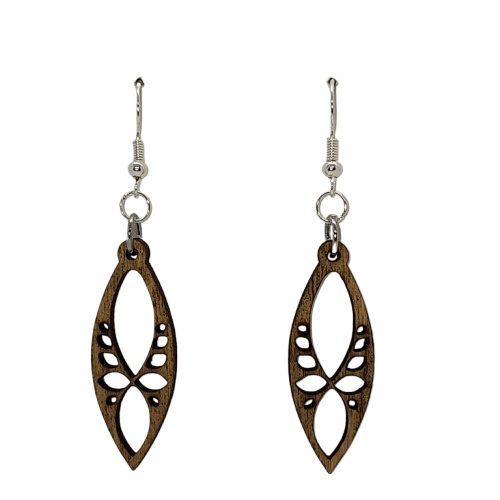 Marquise Earrings: Nature-Inspired Design - These stunning earrings feature a marquise-shaped wooden pendant with intricate leaf-like cut-out patterns, bringing a touch of nature’s beauty to your style.