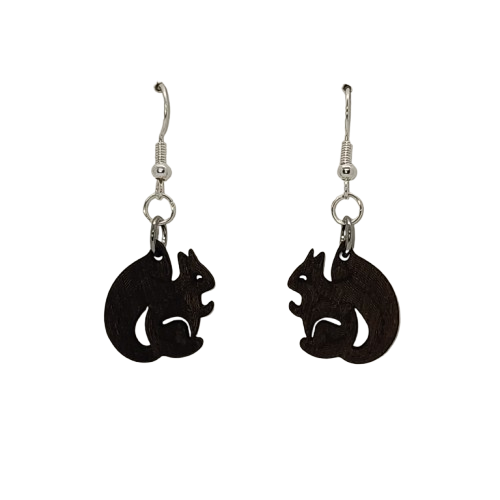 Wooden Squirrel Earrings: Beautifully crafted wooden earrings, featuring a detailed squirrel. Perfect for casual wear or as a thoughtful gift for wildlife enthusiasts.