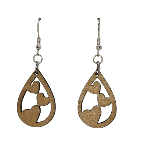 Teardrop heart: Earrings featuring a trio of interconnected hearts within a teardrop frame, these earrings symbolize love and unity in a stylish design. The finish adds a touch of shimmer, making them perfect for any occasion. Lightweight and comfortable, they are a must-have addition to your jewelry collection.
