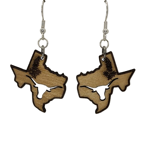 Texas Map: Lone Star Elegance - These earrings feature a beautifully detailed cut-out of the Texas map, perfect for showcasing your love for the Lone Star State.