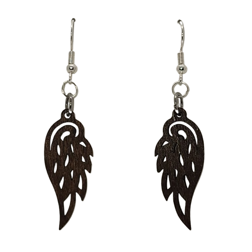 Wings: Artisanal wings jewelry, featuring the stunning Winged Elegance Earrings. Crafted with precision, these earrings boast an exquisite, feathered wing design that symbolizes freedom and grace. Made from wood, they add a touch of sophistication to any outfit.