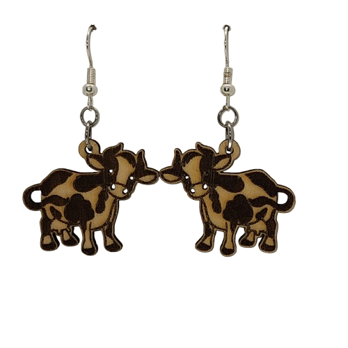 Wooden Cow Earrings: Embrace your love for farm life with these beautifully crafted wooden earrings, featuring a detailed etching of a cow.